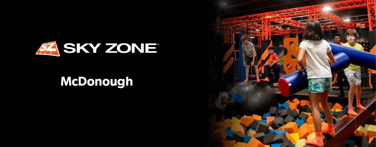 Welcome to our page dedicated to Skyzone McDonough! On this page you will find all the details you need to book an unforgettable visit and find out about upcoming events. Here you’ll be able to get the contact information, opening times, and directions to the Skyzone McDonough location. We hope you enjoy your visit!
